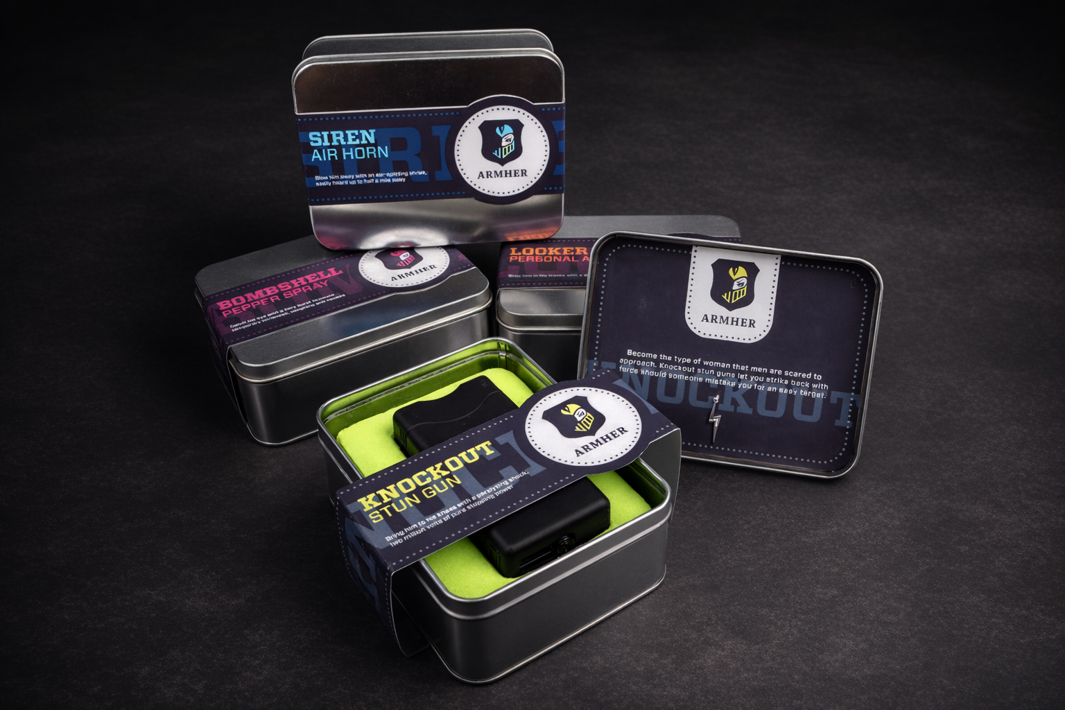 Self-defense products often seem as scary as the predators they fend off. In an effort to make these devices approachable and fashionable, we created Armher. We branded the products and made ads.